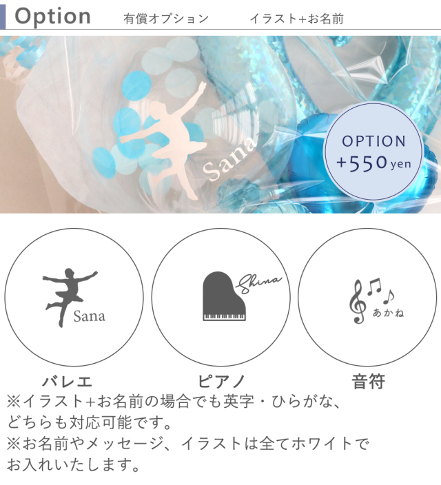 オプションでクリアバルーンにお名前やメッセージ、