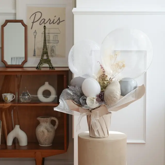 落ち着いたナチュラルカラーがおしゃれなアレンジバルーン。
