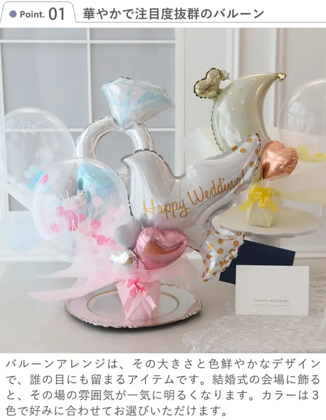 『華やかな結婚祝いにぴったり メッセージ入りバルーンアレンジ』- SPEC