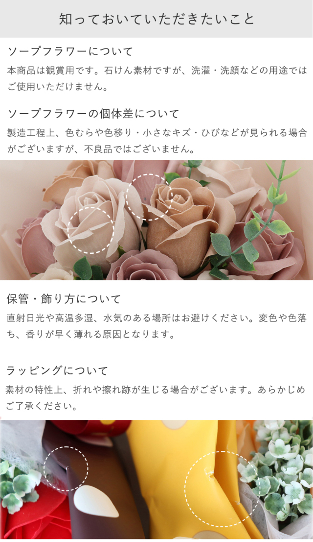 ソープフラワーは石鹸でできたお花なので、枯れてしまう心配がありません。