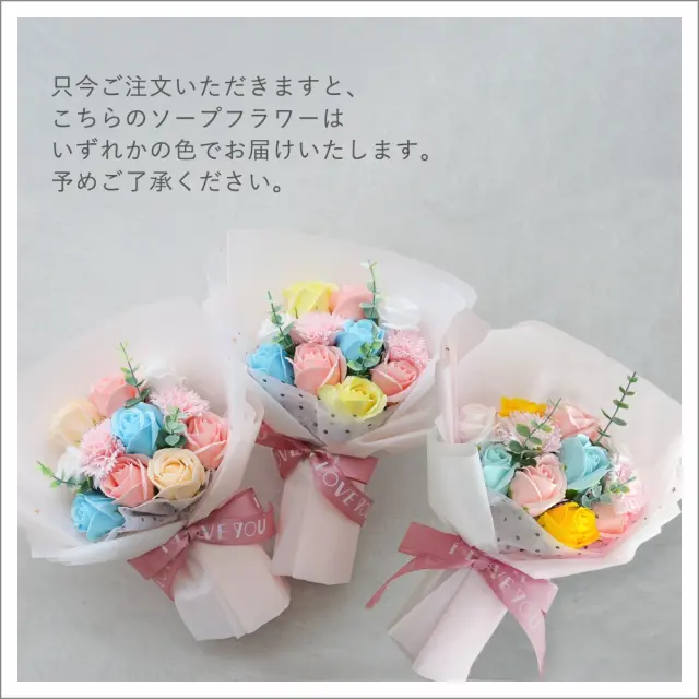 ソープフラワーは石鹸でできたお花なので、枯れてしまう心配がありません。