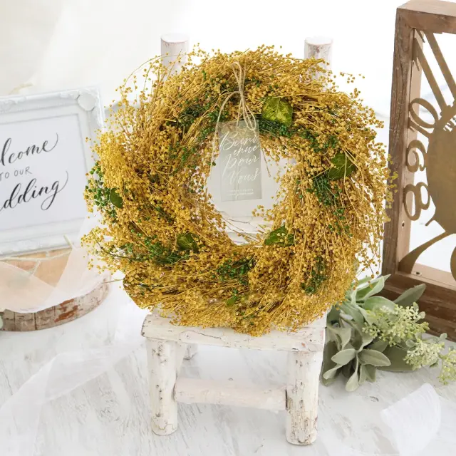 リースは飾りやすく、結婚式の受付やウェルカムスペースははもちろん、