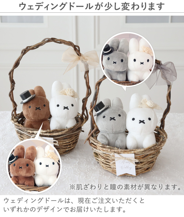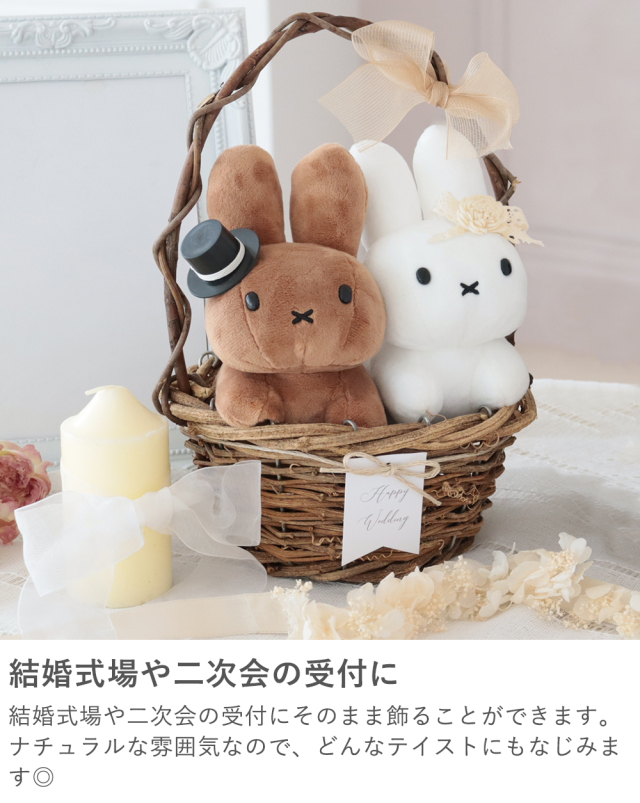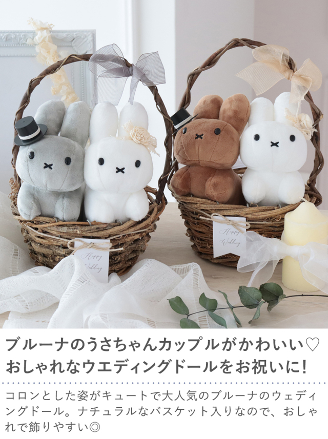 TOP ギフト電報 クイックデリバリー ぬいぐるみ バルーン電報5,001~10,000円 【電報 結婚式】ブルーナナチュラルウェディングバスケット 価格: ¥8,800 (税込) [ポイント還元 88ポイント~] 販売期間: 電報デザインをお選びください: 選択してください ギフト電報ネイビー(ESPECIALLYFORYOU) ギフト電報ホワイト(HAPPYWEDDING) 電報作成について: 選択してください A.自分でデータを作る B.ショップに依頼する(備考欄に記載) 挙式日時: 新郎新婦名: 数量: 個 カラーをお選びください在庫購入グレー×ホワイト1個 ブラウン×ホワイト在庫切れ カラーをお選びください在庫購入グレー×ホワイト1個 ブラウン×ホワイト在庫切れ 返品についての詳細はこちら ブルーナのうさちゃんカップルがかわいい♡ おしゃれなウエディングドールをお祝いに! コロンとした姿がキュートで大人気のブルーナのウェディングドール。 ナチュラルなバスケット入りなので、おしゃれで飾りやすい◎ 結婚式場や二次会の受付に 結婚式場や二次会の受付にそのまま飾ることができます。 ナチュラルな雰囲気なので、どんなテイストにもなじみます◎ お部屋に飾って長く楽しんで◎ コロンと小さめサイズで飾りやすい! 挙式後もご自宅のリビングや玄関に飾って楽しむことができますよ。 ※電報(メッセージカード)はご注文頂いたあとすぐ製作に入ります。 メッセージの変更はできません。あらかじめご了承ください。 この商品について 【電報 結婚式】ブルーナナチュラルウェディングバスケット SPEC ◆サイズ ウェディングドール:約W150×H130mm バスケット:約W170×D170×H240mm ギフト電報:約W210×D145mm(畳んだ状態) 電報×1(ネイビーorドット) 、ぬいぐるみ×2 その他 ◆同梱商品 全ての商品と同梱可能です ◆用途 結婚式、披露宴、結婚祝いなどお祝いに ◆その他 ※土・日・祝日の発送業務はお休みです。