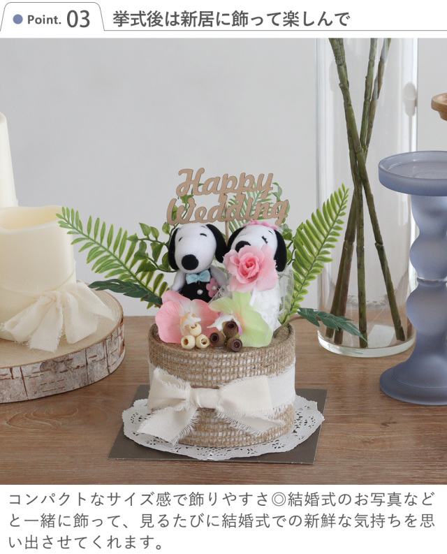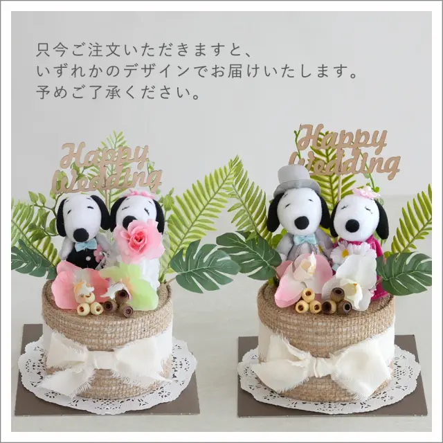 世代を問わず、人気のスヌーピーカップルを。リゾート感たっぷりにアレンジしました。