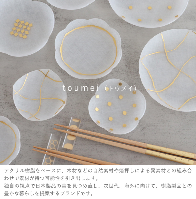 | 商品詳細 | アクリル樹脂、箔 耐熱:アクリル80° ※洗っていただく際は柔らかいスポンジ等で優しく洗ってください。なお、アクリルは食洗機をお使いいただけません。 |