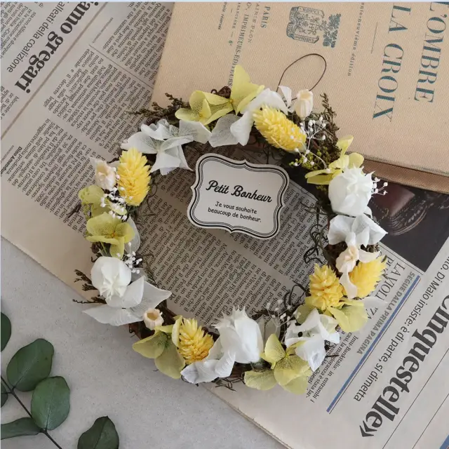 ドライフラワーを使用したフラワーリースは、