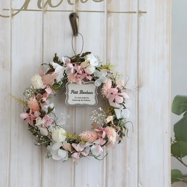 主な材料:ドライフラワー/プリザーブドフラワー/藤/合板 ※お花や葉っぱなど使用材料の種類が若干変更になる場合がございます。 - その他