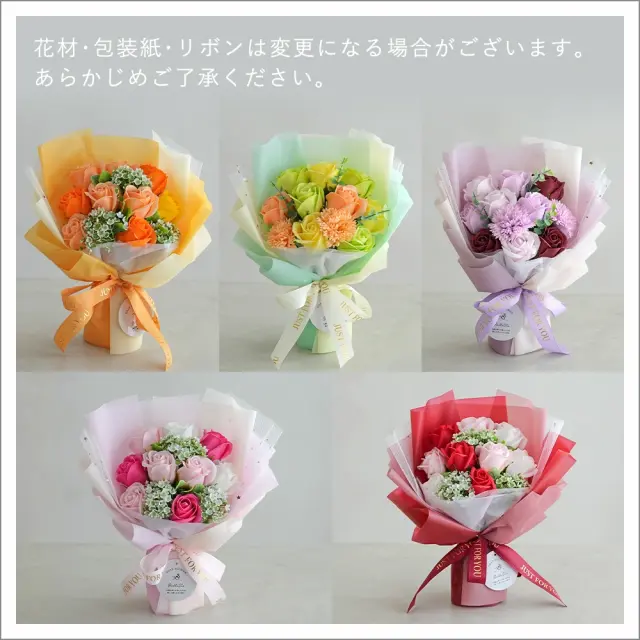 ソープフラワーは石鹸でできたお花で、枯れてしまう心配がありません。
