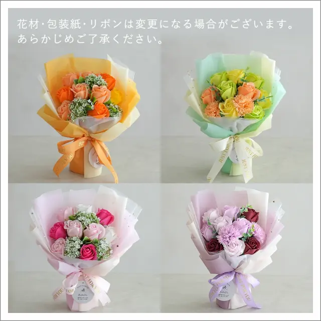 石けん素材で作られた花びらは、やさしい香りと本物の花のような華やかさを楽しめます。
